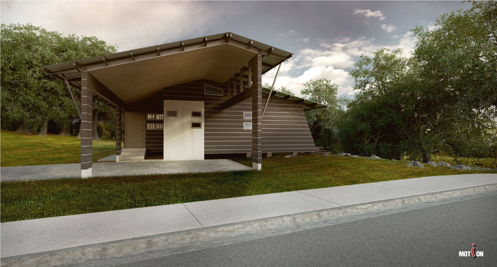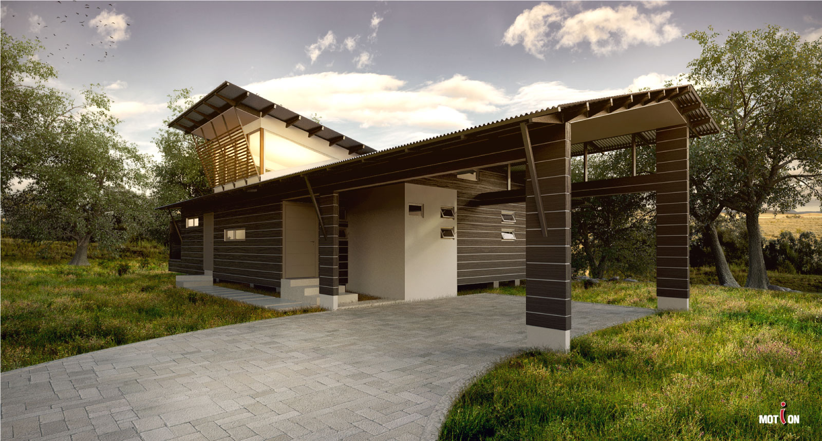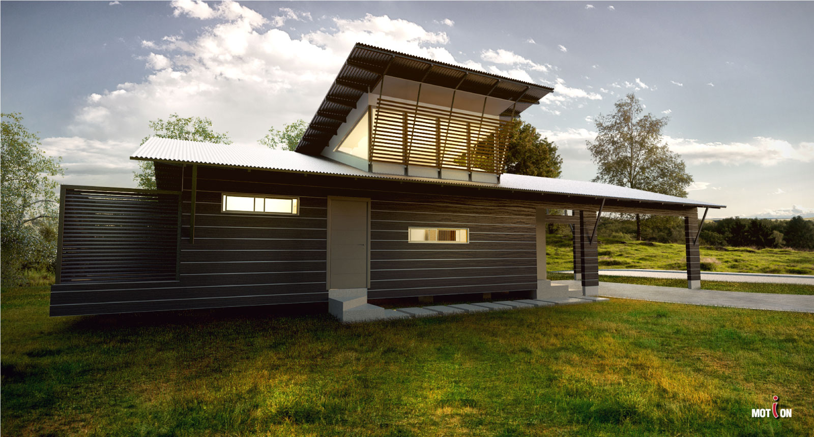 El sitio para este proyecto está cargado de elementos naturales, al norte un talud rocoso y estable que sostiene un árbol de Madero Negro y que proyecta su enorme sombra sobre gran parte del terreno, al pie del talud una pequeña quebrada. Lo que sentimos en las visitas al sitio, es que lejos de crear un proyecto para habitar podíamos crear la sensación de acampar, de generar un proyecto que se asentara con sutileza sobre el terreno, que no fuera tan masivo, más bien que apostara por una propuesta liviana y sencilla. El estudio de suelos terminó por reafirmar nuestro criterio, ya que topamos a poca profundidad con un manto rocoso, y decidimos colocar la casa elevada sobre el terreno, manteniendo únicamente los núcleos húmedos(baños) tocando el suelo.