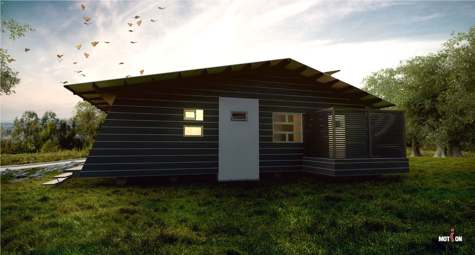 Arquitectónicamente el proyecto se resuelve en una planta rectangular de 12.00×10.25mts, conteniendo dos habitaciones, cocina, comedor, sala de estar, un estudio, dos baños, pilas y un deck que da hacia el talud y el madero negro.
