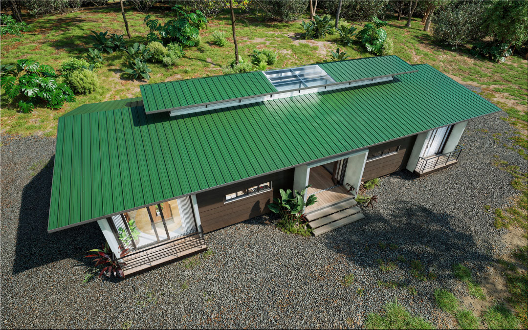 Los aleros son generosos, brindando protección solar y sombra, especialmente en las fachadas expuestas al este y oeste.