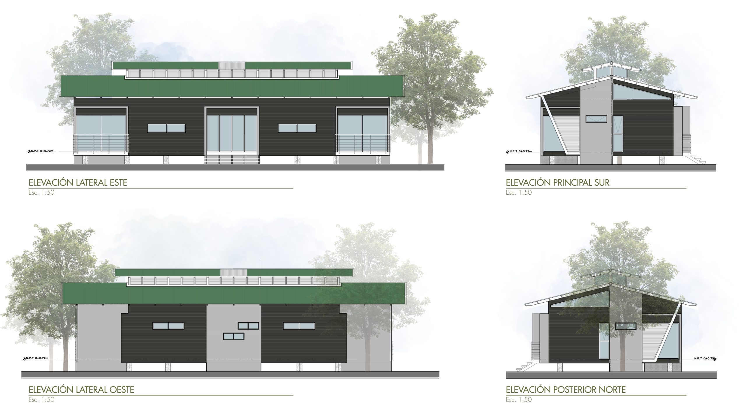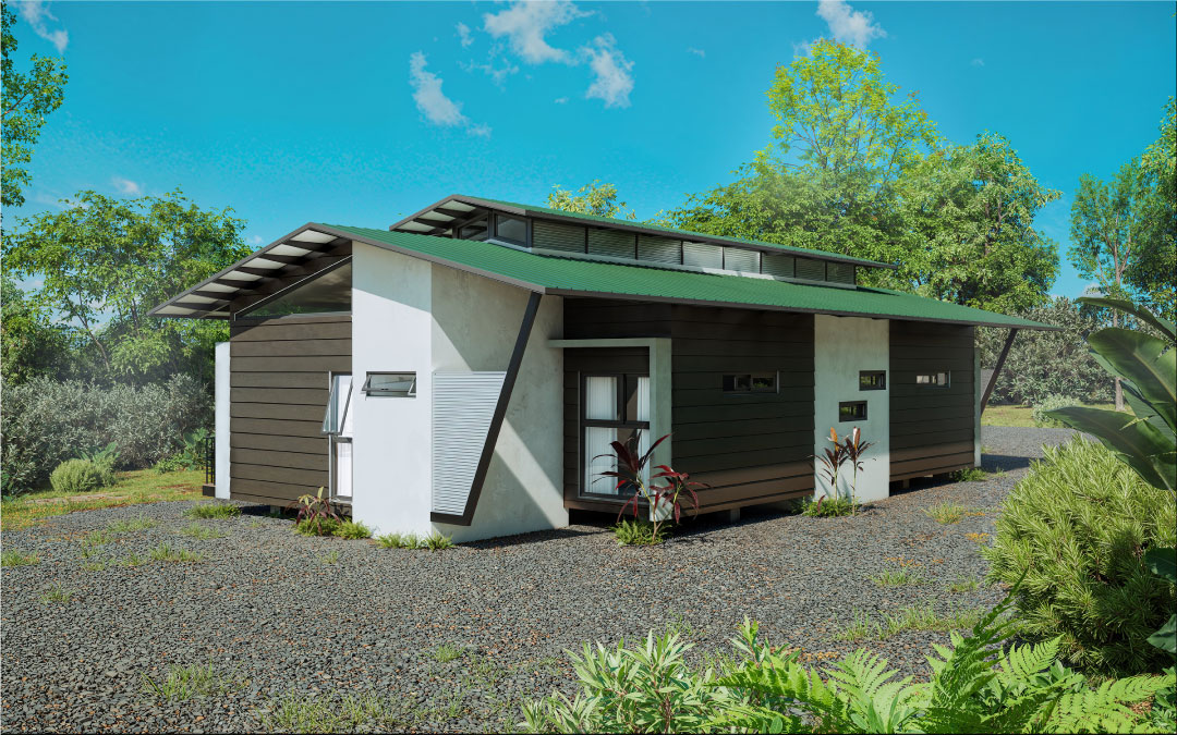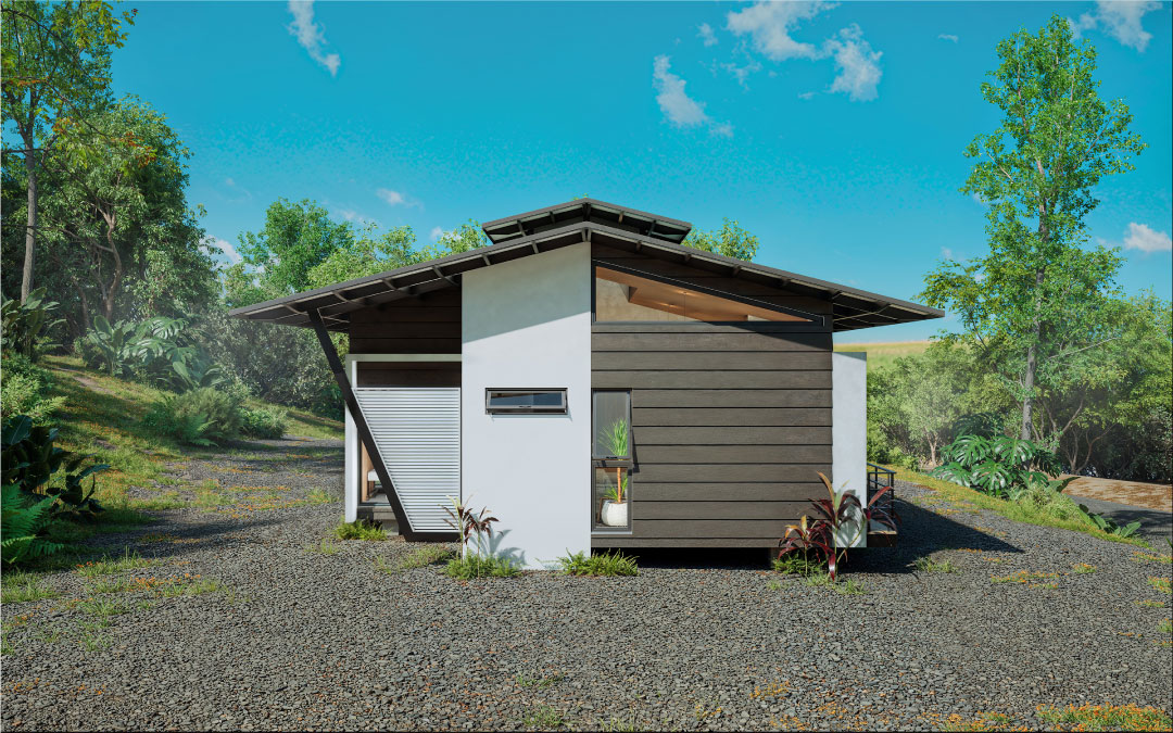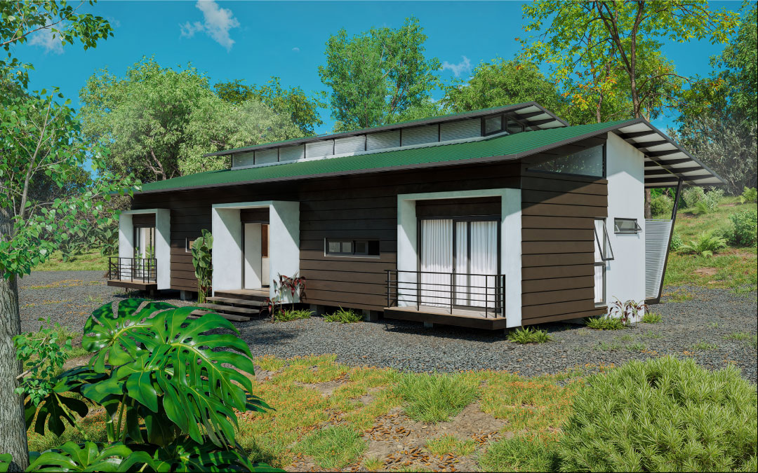 Los materiales fueron seleccionados para integrarse a la propuesta, generando un bajo impacto ambiental, son de fácil transporte, y además modulares, paredes con material liviano tipo Siding y una estructura metálica elevada sobre el nivel natural del terreno mediante pedestales de concreto, pretenden rescatar y revalorizar la tipología de las casas caribeñas.